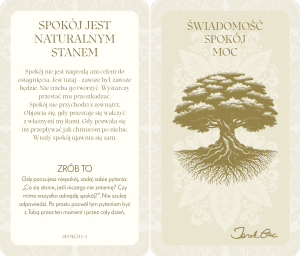Treść kart to esencja 30-letniego doświadczenia autora, socjologa i psychologa społecznego, nauczyciela duchowości stąpającej po ziemi, który pomógł tysiącom osób odzyskać spokój ducha, budować świadomośc i dobrostan na co dzień